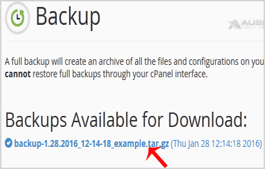 3. Under "Full Backup", click on the "Download a Full Website backup" button.