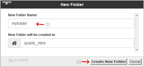 5. In the "New Folder Name" field enter your folder name like "myfolder" (without the quotes). Then click on the "Create New Folder" button.