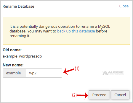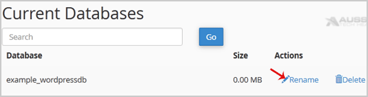 3. Under "Current Databases", You can see list of your all databases. Locate the Database and then click on "Rename" Icon.