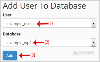 3. Scroll down to the end of the page and under "Add User to Database", select a user from the dropdown list, and then choose a Database from the list.