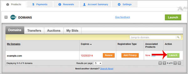 4. Click on "Launch" next to the domain you wish to manage.
