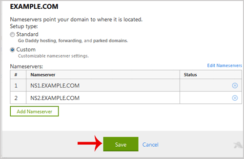 6. In "Nameservers Settings", select "Custom" and then click on the "Edit Nameservers" Link.