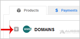 3. After a successful login, click on the + (plus) icon next to Domains in the "Products" tab.