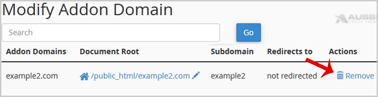 3. Locate the addon domain under "Modify Addon Domain" and then click on the "Remove" link.