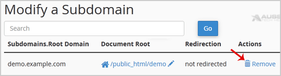 5. You will receive a warning that you are removing a "subdomain.example.com". You will need to click on the "Delete Subdomain" button to remove your subdomain permanently.
