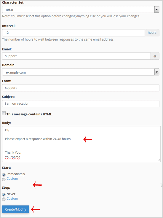 4. In the Interval field, specify the number of hours you wish the autoresponder to wait between responses to the same e-mail address.