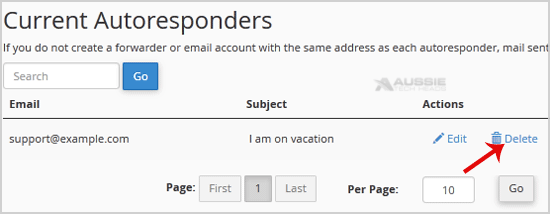 3. Next to autoresponder, click on "Delete" Autoresponder.