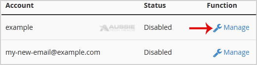 3. From the BoxTrapper Page you can see a list of your emails under the "Account" tab and the status of BoxTrapper (enabled/disabled) under "Status" tab. Click on the "Manage" Link.