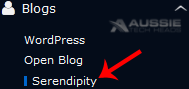 4.  On the left side of your screen you should locate the "Blogs" category. Click on it and then click on the "Serendipity" link that will appear.