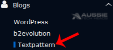 4. On the left side of your screen you should locate the "Blogs" category. Click on it and then click on the "Textpattern" link that will appear.