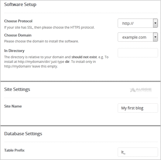 • In Directory: If you want to install this in a directory, for example example.com/directory, enter the directory name. Otherwise, leave this blank to install in your main domain example.com