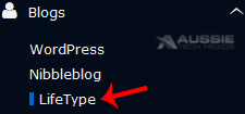 4.  On the left side of your screen you should locate the "Blogs" category. Click on it and then click on the "LifeType" link that will appear.