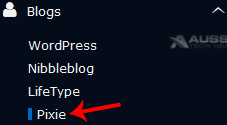 4. On the left side of your screen you should locate the "Blogs" category. Click on it and then click on the "Pixie" link that will appear.