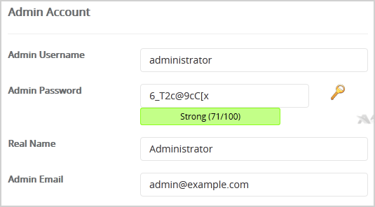 • Admin Username: Your new Nucleus username (for security reason do not use the "Administrator" or the "Admin" username.)