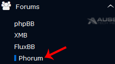 4. On the left side of your screen you should locate the "Forums" category. Click on it and then click on the "Phorum" link that will appear.