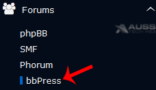 4. On the left side of your screen you should locate the "Forums" category. Click on it and then click on the "bbPress" link that will appear.