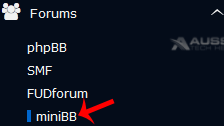 4. On the left side of your screen you should locate the "Forums" category. Click on it and then click on the "miniBB" link that will appear.