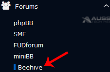 4. On the left side of your screen you should locate the "Forums" category. Click on it and then click on the "Beehive" link that will appear.