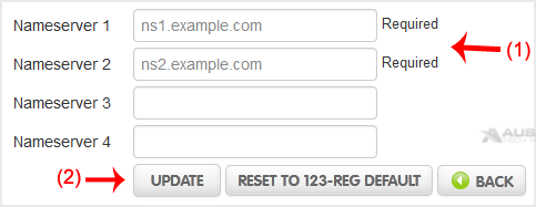5. Enter your Nameserver in field 1 and field 2 and then click on the "Update" Button.