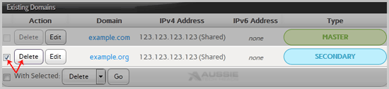 4. Under "Existing Domains " tab, Select Appropriate domain name you want to delete.