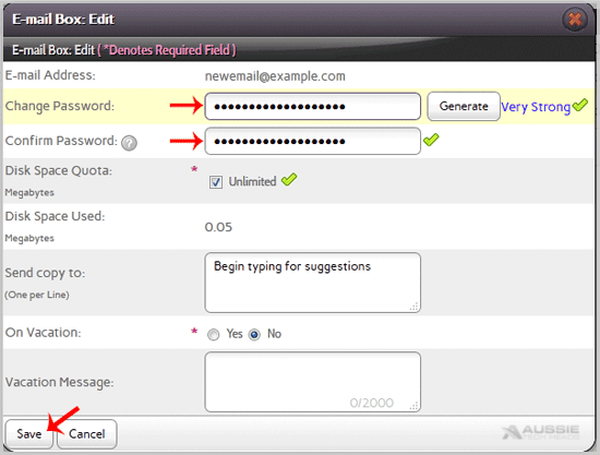 4. Under "Existing E-mail Boxes" tab, Select the appropriate e-mail address and click on the "edit" button.