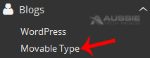 4. On the left side of your screen you should locate the "Blogs" category. Click on it and then click on the "MovableType" link that will appear.