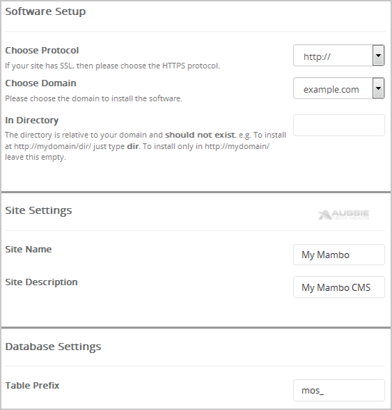 Note: Copy the admin username and password on a notepad because you will need these login details to access the admin area of your Mambo Website.