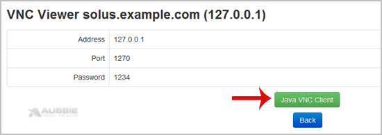 7. The new VNC page will open. Click on "Java VNC Client" or on the "VNC" button.